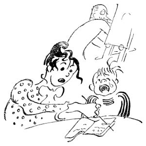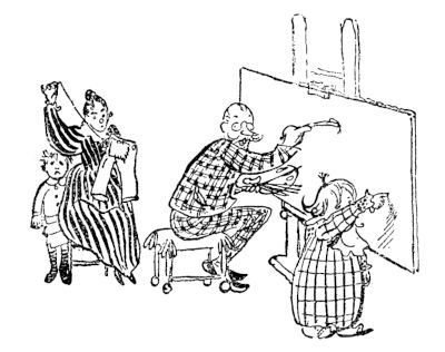 Als ich mich soeben Pontus gegenüber groß tat, daß ich in diesem Buche so in verschmitzter Art für die Abschaffung der Ferienaufgaben einträte, antwortete er trocken: „Einen Menschen einen halben Sommer hindurch mit Modellsitzungen zu quälen, müßte auch gesetzlich verboten werden!“