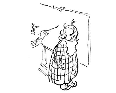Aber wie sieht sie verweint und häßlich aus, meine kleine süße Kersti! Ist es vielleicht, weil Esbjörn auf ihrem Hut Rad gefahren ist?