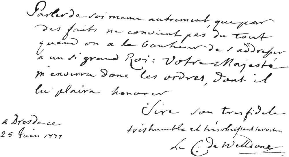 [437] Graf Camillo Marcolini (1739-1814), kursächsischer Kabinettsminister. Über seine Verhandlung mit Saint-Germain liegen im Hauptstaatsarchiv in Dresden keinerlei Nachrichten vor.