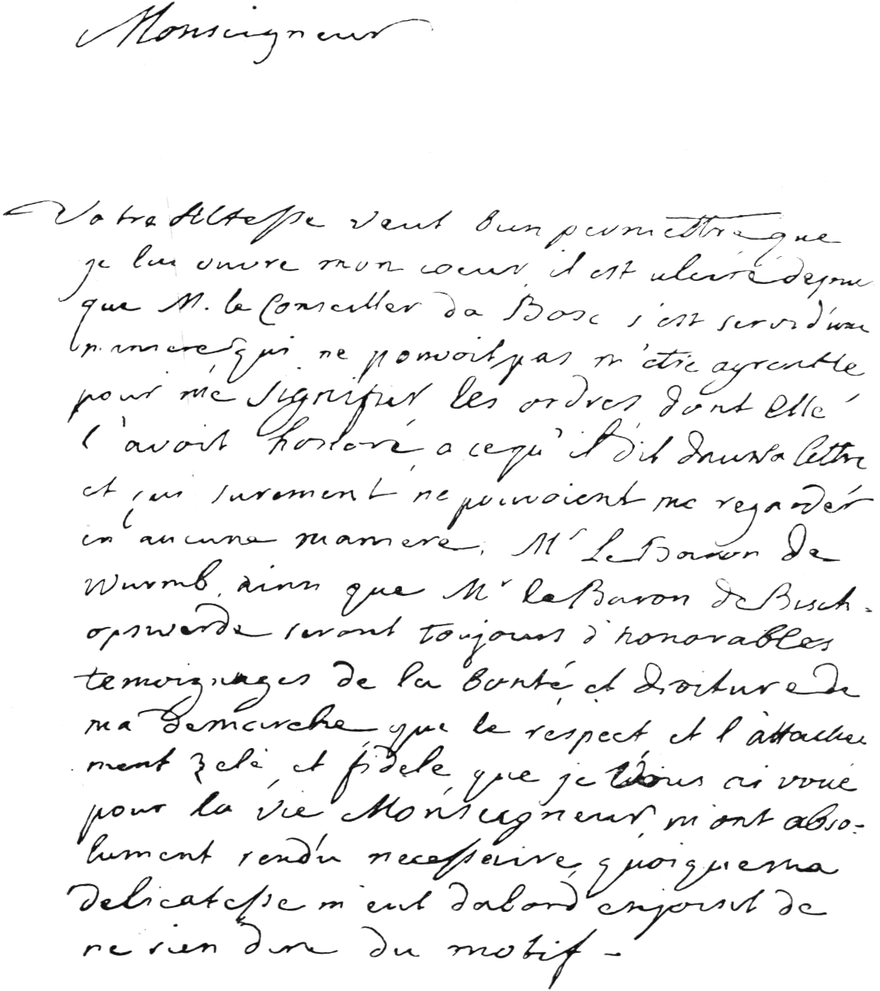 [454] Prinz Friedrich August (1740-1805), Sohn des Herzogs Karl und Neffe Friedrichs des Großen, preußischer Generalleutnant. Der Prinz war Großmeister der Loge „Zu den drei Weltkugeln“ in Berlin und Großprior der Freimaurerlogen der „strikten Observanz“ in den preußischen Staaten. Der folgende Briefwechsel stammt aus seinem Nachlaß in der Braunschweigischen Landesbibliothek zu Wolfenbüttel.