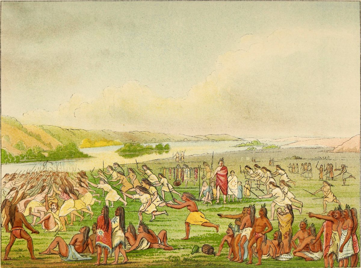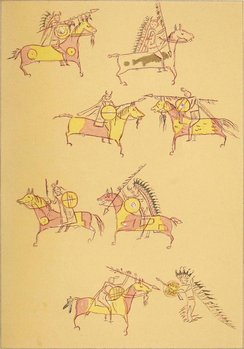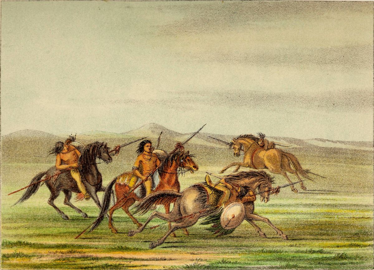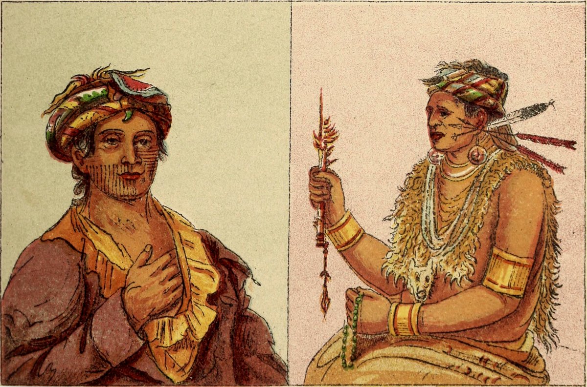Since writing the last epistle, some considerable time has elapsed, which has, nevertheless, been filled up and used to advantage, as I have been moving about and using my brush amongst different tribes in this vicinity. The Indians that may be said to belong to this vicinity, and who constantly visit this post, are the Ioways—Konzas—Pawnees—Omahas—Ottoes, and Missouries (primitive), and Delawares—Kickapoos—Potawatomies—Weahs—Peorias—Shawanos, Kaskaskias (semi-civilized remnants of tribes that have been removed to this neighbourhood by the Government, within the few years past). These latter-named tribes are, to a considerable degree, agriculturalists; getting their living principally by ploughing, and raising corn, and cattle and horses. They have been left on the frontier, surrounded by civilized neighbours, where they have at length been induced to sell out their lands, or exchange them for a much larger tract of wild lands in these regions, which the Government has purchased from the wilder tribes.