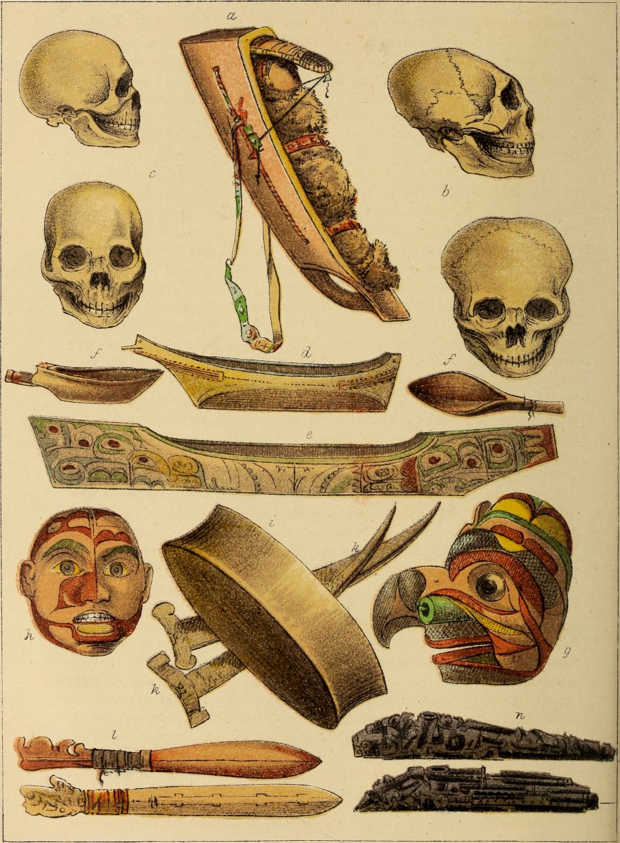 Whilst visiting this mound in company with Major Sanford, on our way up the river, I discovered in a hole made in the mound, by a “ground hog” or other animal, the skull of the horse; and by a little pains, also came at the skull of the chief, which I carried to the river side, and secreted till my return in my canoe, when I took it in, and brought with me to this place, where I now have it, with others which I have collected on my route.