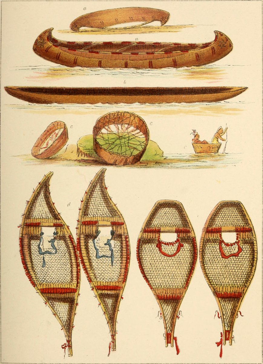 Letter b in the same plate, shews the customs of the Sioux, which are found in endless numbers on the river; and in fact, through every part of this country. The wigwams of these people are only moveable tents, and leave but a temporary mark to be discovered. Their burials, however, are peculiar and lasting remains, which can be long detected. They often deposit their dead on trees, and on scaffolds; but more generally bury in the tops of bluffs, or near their villages; when they often split out staves and drive in the ground around the grave, to protect it from the trespass of dogs or wild animals.