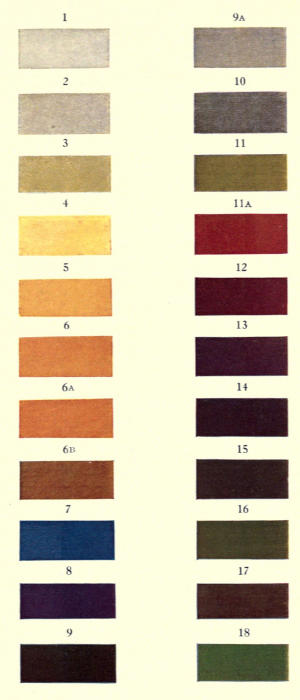 The most satisfactory tying silk is Pearsall’s “Gossamer,” which is standardized in shades. A shade card is illustrated and the numbers appearing after the various silks mentioned in the text correspond with the numbers above the various shades illustrated.