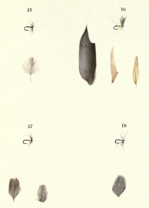 When the writers began to take a practical interest in trout fly dressing, they experienced great difficulty in determining the correct feathers for the various patterns, as the older books on the subject of North Country flies are vague in the extreme. The few more modern writers on wet flies, for want of precision, have done little to help the beginner to a proper appreciation of his materials. It was therefore felt that a book, which not only prescribed the exact part of a bird from which the correct feathers should be taken, but illustrated such feathers and other materials (as also the flies made therefrom), in colour, would be a help, at least to beginners in the craft, and not merely an encumbrance on angling literature.