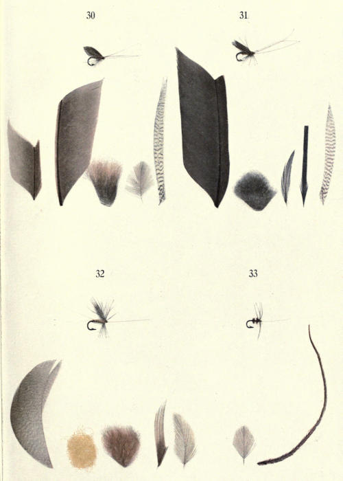 It is not intended to devote any space to the processes of fly-tying, as much has been written on the subject. The reader in search of information cannot do better than read the late H. G. McClelland’s book, The Trout Fly Dresser’s Cabinet of Devices, or How to tie Flies[8] for Trout and Grayling Fishing, which is the most practical and exhaustive treatise on the subject known to the writers.