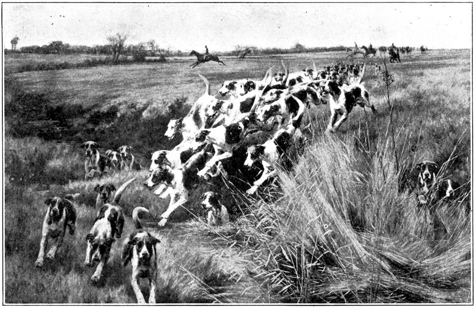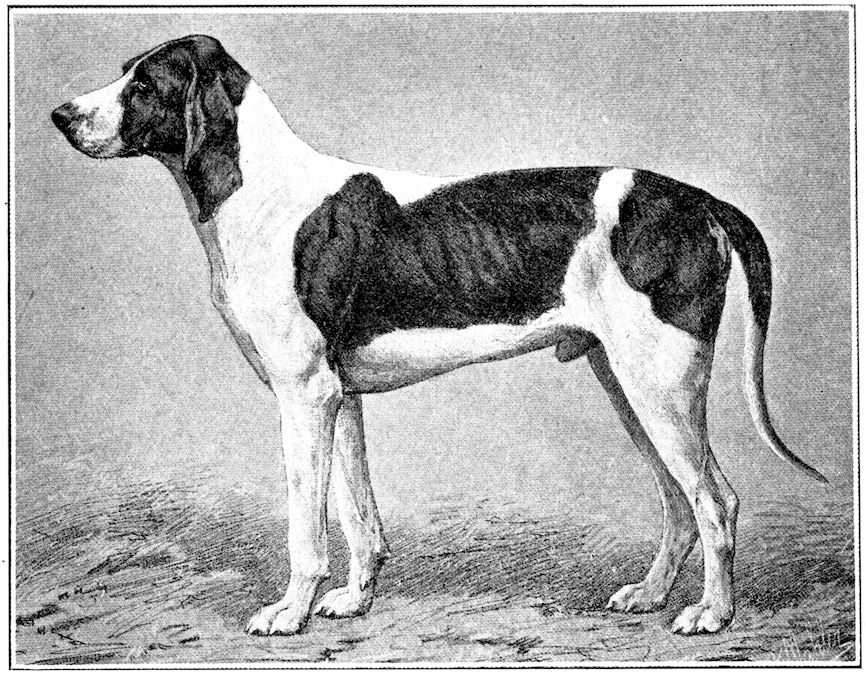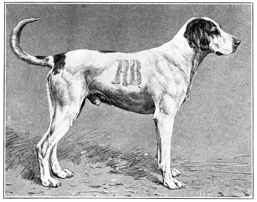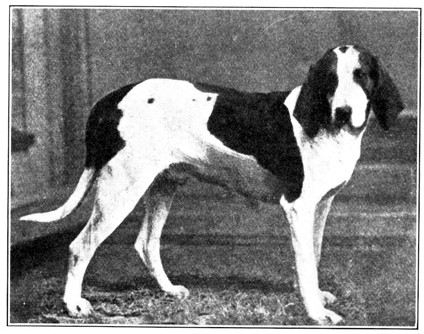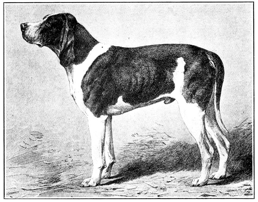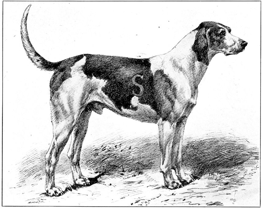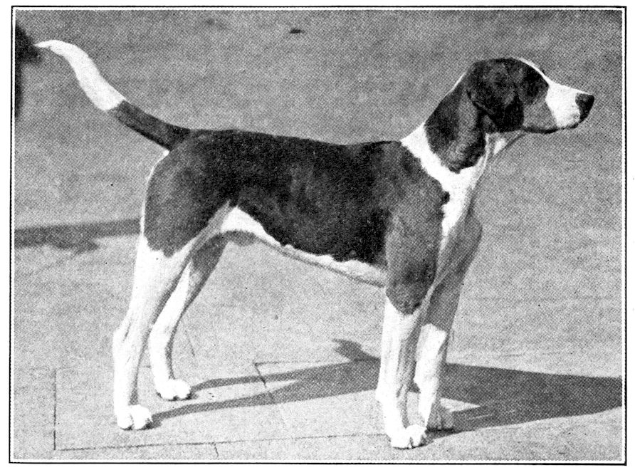 The leading features of Harriers are long heads, free from “stop,” square muzzles, sloping shoulders, straight forelegs, round cat-like feet, short backs, well sprung ribs, strong loins, and sound hindquarters with well bent stifles.