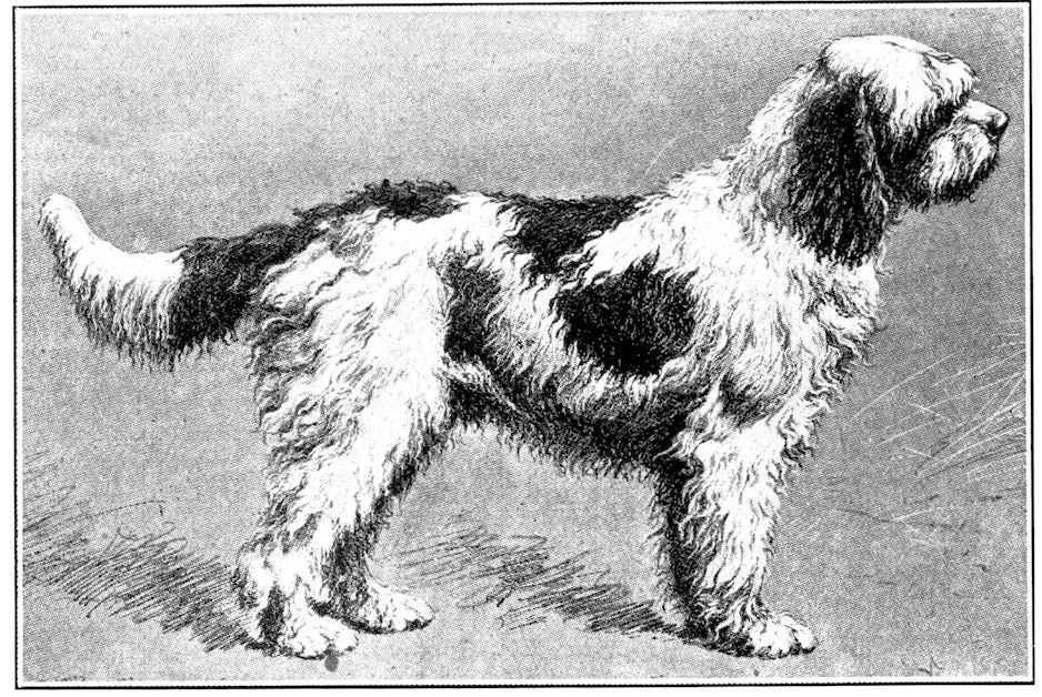 This dog should be shaped like a setter in miniature, but he is more merry and alert in expression and behavior. It is essential that he should combine small size with great activity. The skull is fairly long and forehead raised. Color of eyes varies according to the color of the coat, but should always be mild in expression. The ears are of moderate size, broad rather than long and fairly well covered with hair. His neck is long, clean, arched, and muscular, with well developed body and very strong hind quarters. The stern is docked, carried downwards, and has a perpetually vibrating movement, a sort of restless quivering, peculiar to his breed. The coat is smooth or slightly wavy, very dense but not very long.
