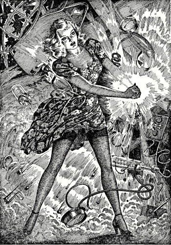 For close were the temporal paths and the catastrophic energy of Earth Two found its outlet through the myriad of open paths furnished by the millions of commercially-used bits of space-resonant elements. From each of the crystals there poured a torrent of overwhelming flame that of itself formed more of the space-resonant elements.