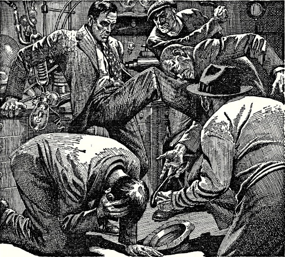 He landed in his own laboratory amid the four minions of Kingston. The suddenness of his appearance sent them flying in four directions. He whirled and reached for the assembled blocks of the space-resonant elements on the bench, to separate them again.