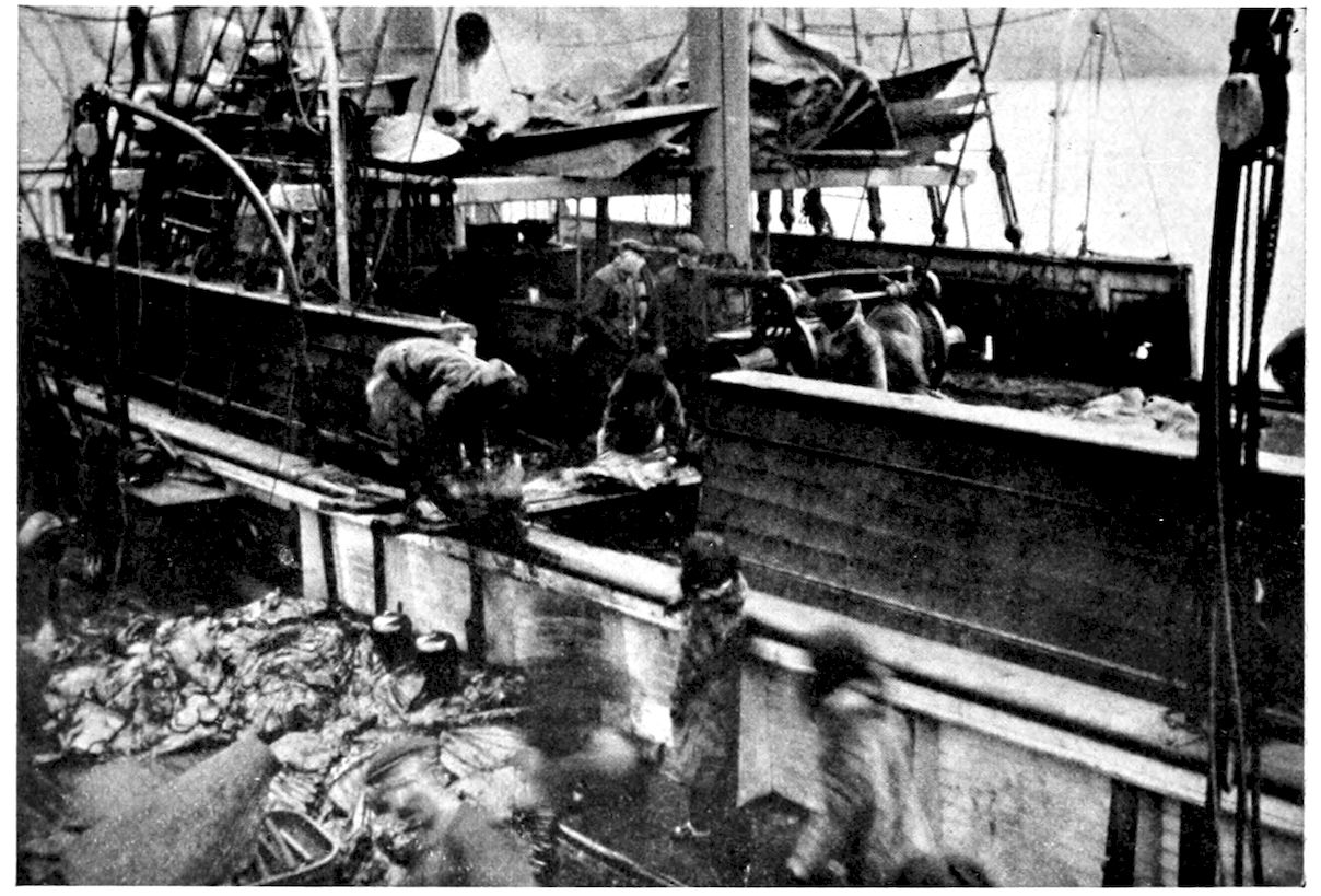 Of alcohol, and other artificial drinks, there is none. No excess of any kind—unless we can call “excess” the hearty eating which is necessary to the Eskimos’ existence. On the other hand, hunger is no particular hardship to these people. Their bodies are well-rounded, seemingly to answer the purpose of the camel’s hump.