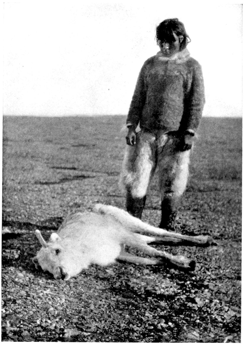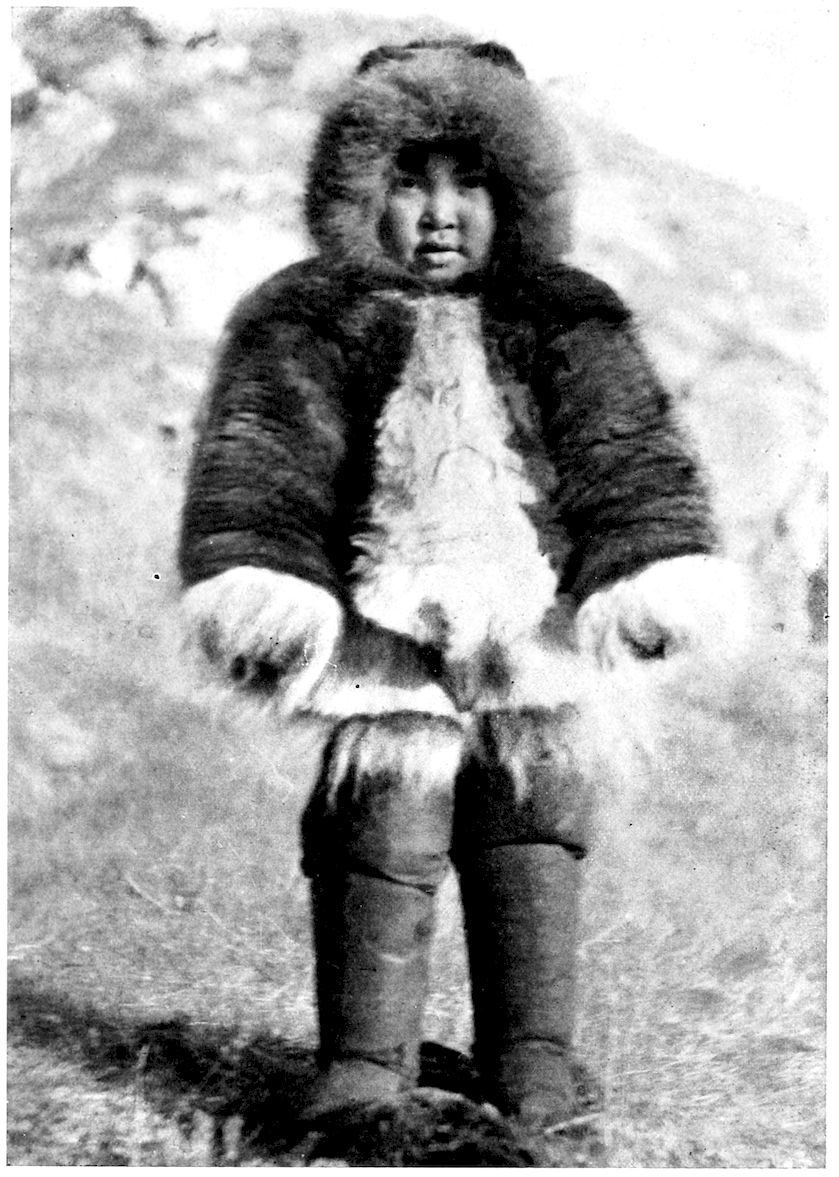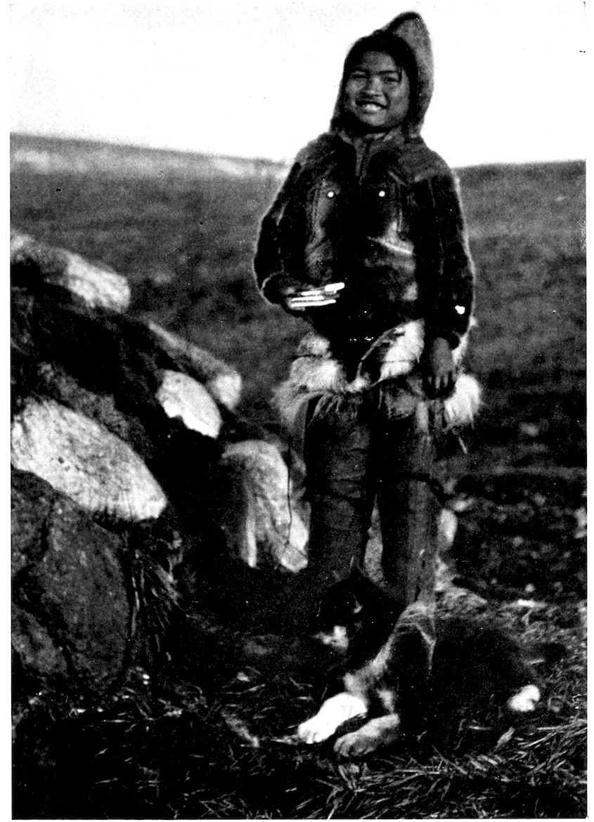Churches, schools, and governments are unknown quantities. Yet in every home a perfect system of training goes on for the benefit of the rising generation. At the earliest age an Eskimo lad will be taught the use of his arms in the throwing of a harpoon; a little 380later he learns the hitching up of dog-teams to sledges; and by the time he has lived twelve winters, he is taken to the walrus hunting ground to learn to be a man.