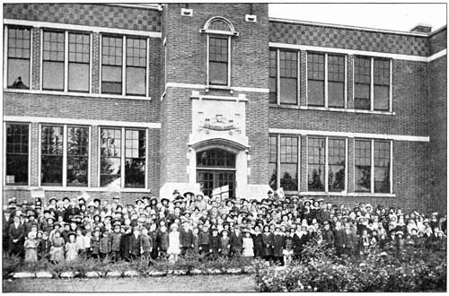 The fire of love for right and liberty which shone so brightly in the pioneers’ everyday life still burns fiercely in the hearts of Canada’s sons. The heroic deeds of valor, of service and sacrifice on the battlefields of Flanders by our boys have thrilled the heart of the world and welded forever an unbroken chain between that of the early pioneer fathers and[11] mothers, and that of their sons and daughters of to-day, for the cause of liberty, freedom and righteousness, for the love of home and country, for the love of the Motherland, for the love of peace and goodwill to men.