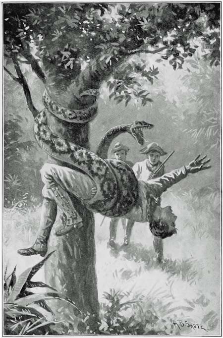 “The professor and Cubara are out looking for you. Hockley is in the tent. He fell in with a boa-constrictor[308] and the snake nearly crushed him to death.”