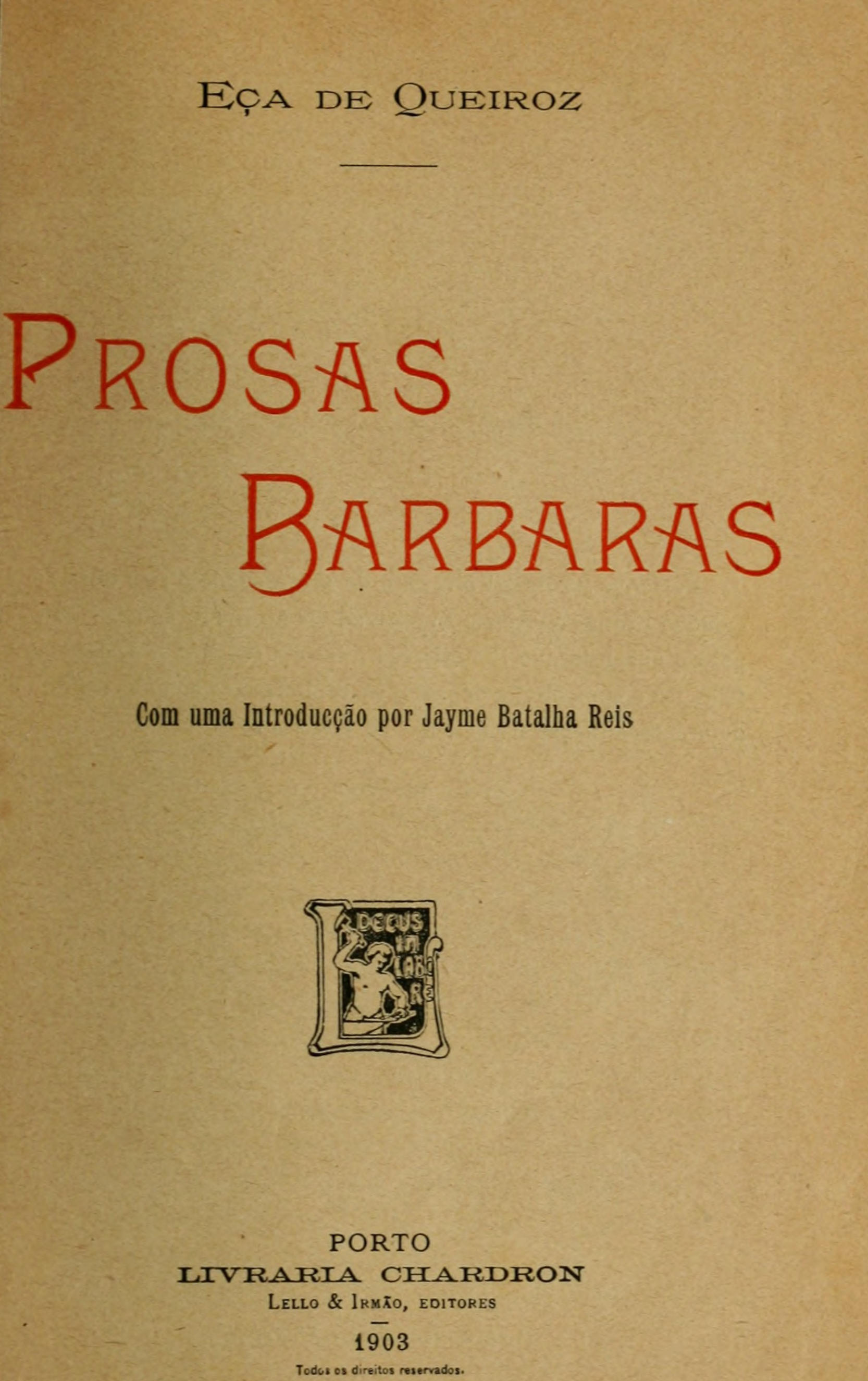 Eça de Queiroz morava em casa da familia, ao Rocio, no 4.ᵒ andar do predio n.ᵒ 26. O seu quarto—pequeno, com uma mesa ao centro e uma estante para poucos livros,—dava para a rua do Principe. Ahi foram, em parte, escriptos os Folhetins das Prosas barbaras.