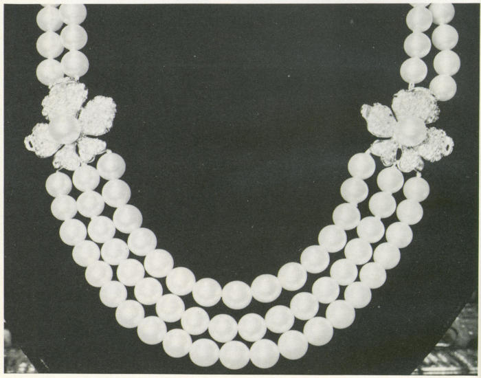 | THE SYMBOLISM OF THE NECKLACE 139 THE GENERAL EFFECT 140 THE DIAMOND NECKLACE 141 THE RIVIÈRE 141 THE BAGUETTE NECKLACE 142 THE PEARL NECKLACE 142 THE COLORS OF THE PEARL 143 FOR THE BRUNETTE 143 FOR THE BLONDE AND THE REDHEAD 144 FOR A LONG NECK 144 FOR A WIDE NECK 145 SIZE OF PEARLS 145 THE PROPER STRINGING OF PEARLS 145 THE NECKLACE CLASP 146 DESIGNS FOR CLASPS 146 FOR FORMAL WEAR 147 THE SENTIMENTAL CLASP 148 FITTING THE PEARL NECKLACE 148 THE BEAD NECKLACE 149 FASHIONS FROM INDIA 149 OTHER NECKLACE JEWELS 150 THE NECKLACE OF GOLD 151 APPENDAGES: THE TASSEL 152 APPENDAGES: THE SINGLE DROP 152 TRANSFORMATIONS 153 MY OWN CONVERSIONS 153 WHAT A WOMAN WEARS, OTHERS SEE 154 | |