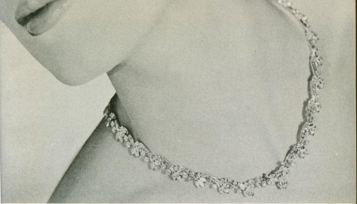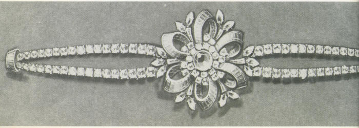 But at this point the story of the Sancy Diamond takes a double path. Sold to the Maharajah of Patiala and set in platinum, it remains part of the treasure of the land from which it first came. So goes the story. But either the Sancy diamond or a mysterious twin is worn by the former Nancy Langhorne of Virginia, now Lady Astor.