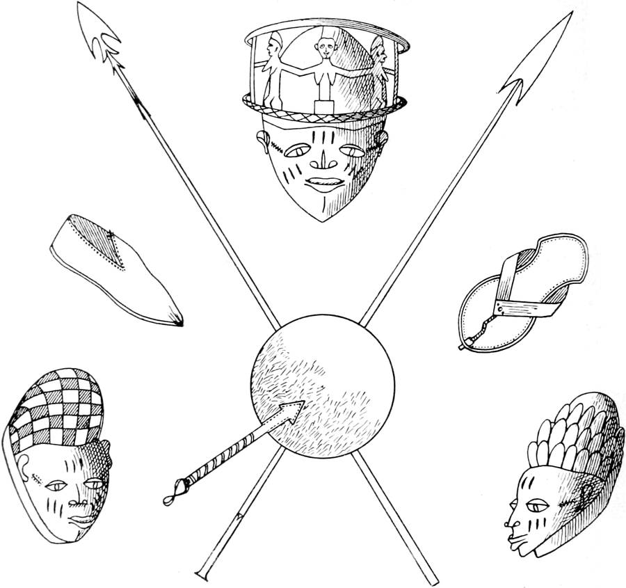 Fetischmasken, Schuhe, Fächer und Lanzen aus dem