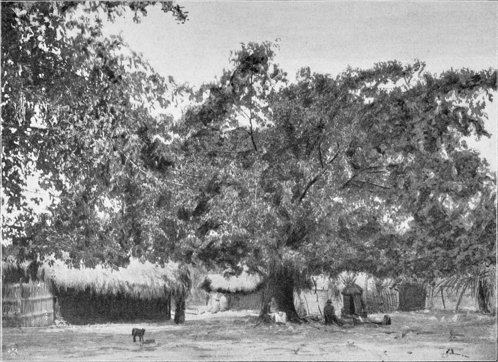 Vogelii-Kautschukbaum im Dorfe Lolobi