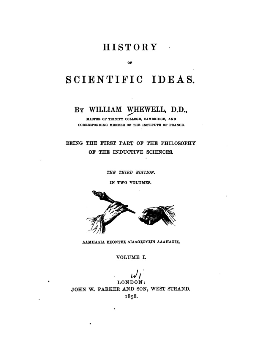 THE Chapters now offered to the Reader were formerly published as a portion of The Philosophy of the Inductive Sciences, founded upon their History: but the nature and subject of these Chapters are more exactly described by the present title, The History of Scientific Ideas. For this part of the work is mainly historical, and was, in fact, collected from the body of scientific literature, at the same time that the History of the Inductive Sciences was so collected. The present work contains the history of Science so far as it depends on Ideas; the former work contains the same history so far as it is derived from Observation. The leading features in that were Theories inferred from Facts; the leading features of this are Discussions of Theories tending to make them consistent with the conditions of human thought.
