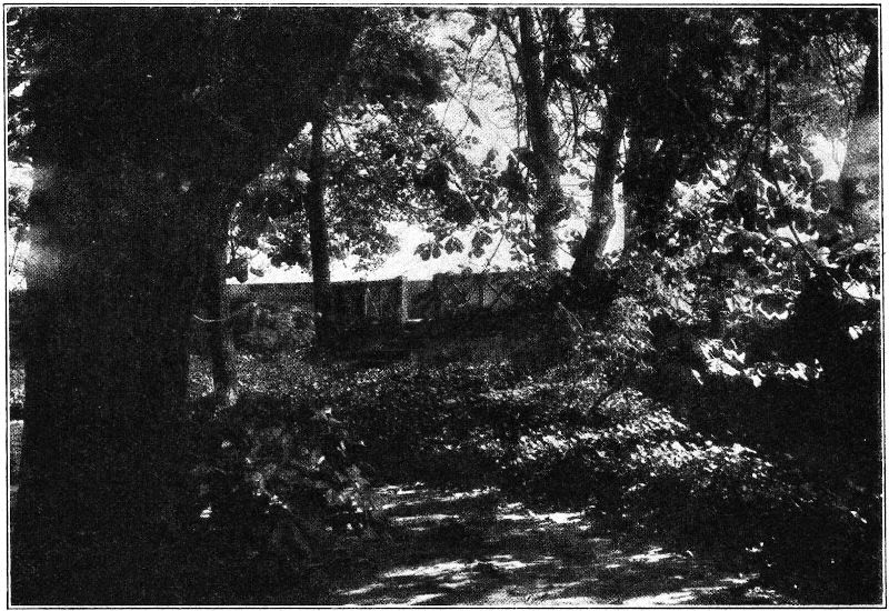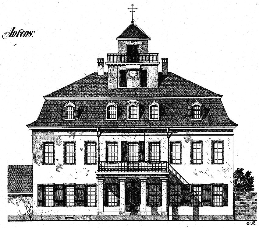 Die Landstraße führt zwischen dem Schloß und der ehemaligen Schmiede hindurch. Neben der Schmiede sieht man ein schönes barockes Tor und seitlich zwei gleichfalls barocke Figuren. Das Tor führt nach dem sogenannten Lustgarten, der jetzt der Obstgarten des Schlosses ist. Der Name in Verbindung mit den Architekturresten weist auf die Zeit, da man an die Herrensitze kleine nach französischer[149] Art zugestutzte Architekturgärten anfügte. Was der prachtliebende August der Starke in und um Dresden in großem Stile ausführte, das fand in etwas bescheidenerem Umfang wohl auch hier Aufnahme.