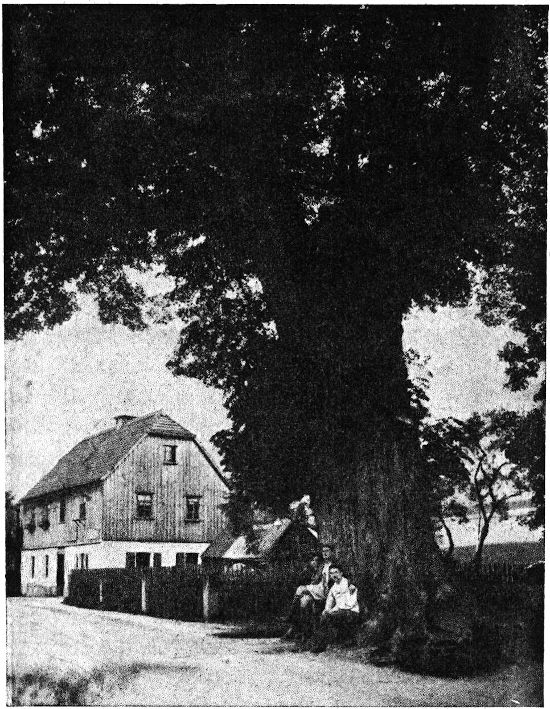 Auch der alten Pfarrlinde in Markersbach bei Gottleuba drohte dieses Schicksal. Es wäre ein besonders schwerer Verlust gewesen, stellt doch dieser Baum nicht nur ein durch Alter geweihtes Naturdenkmal dar, sondern er ist auch als getreuer Schicksalszeuge der Gemeinde kulturgeschichtlich von hohem Werte. Soll doch hier unter seinem grünen Blätterdache, der Überlieferung nach, der erste evangelisch-lutherische[188] Gottesdienst abgehalten worden sein, und da Markersbach 1576 seinen ersten evangelisch-lutherischen Pfarrer erhielt, kann das Alter dieser Linde auf etwa vierhundert Jahre angenommen werden. Daß bei diesem hohen Alter auch alle lebensfeindlichen Einflüsse sich besonders geltend machten, ist trotz des gesunden Aussehens des eineinhalb Meter im Durchmesser habenden Stammes und der vollen Laubkrone nicht verwunderlich. Durch die Öffnungen zweier vor langer Zeit abgebrochenen Hauptäste hatten Regen und Schnee ungehindert Zutritt in das unzugängige, völlig hohle Stamminnere und förderten die Fäulnis in besorgniserregender Weise. Diese Gefahr für den Weiterbestand des Baumes ist jetzt beseitigt. Die nicht ungefährliche, auf hohen Leitern auszuführende Arbeit des Verschließens der Astöffnungen wurde in zweckentsprechender Weise von Herrn Baumeister Reppchen in Gottleuba ausgeführt. Die Mittel hierzu stiftete ein seit Jahren mit Markersbach und seinen Bewohnern innigst verbundener Freund aller Heimatschutzbestrebungen, Herr Geheimer Kommerzienrat Meinel-Tannenberg.