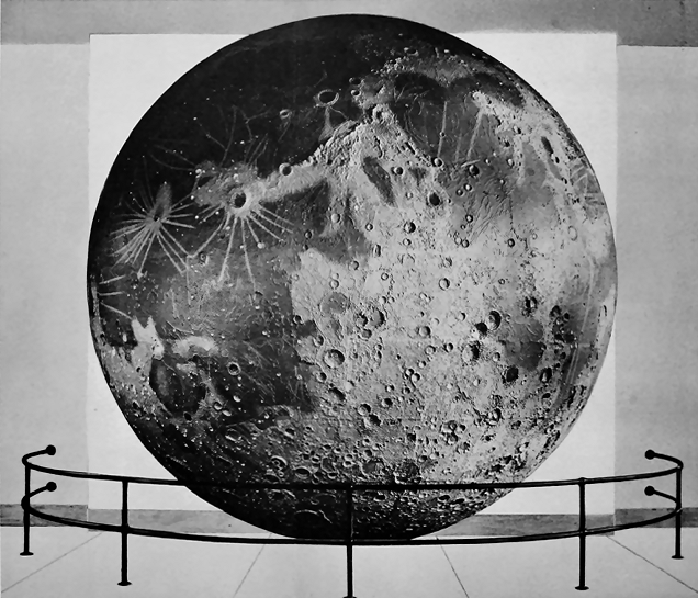 PHOTOGRAPH OF MODEL IN RELIEF OF THE VISIBLE HEMISPHERE OF THE MOON. HALL 35.