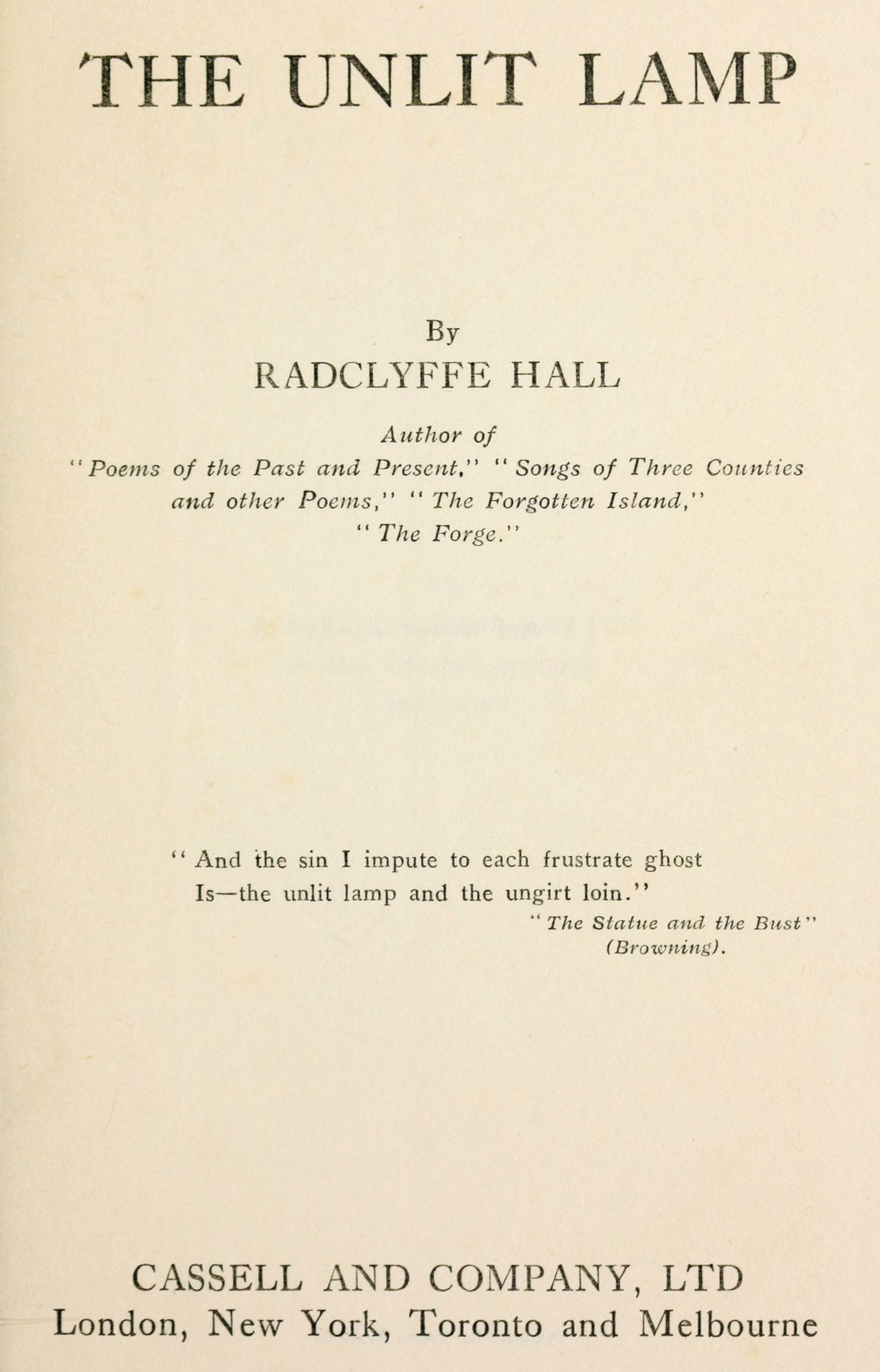 The Project Gutenberg eBook of The unlit lamp, by Marguerite Radclyffe-Hall