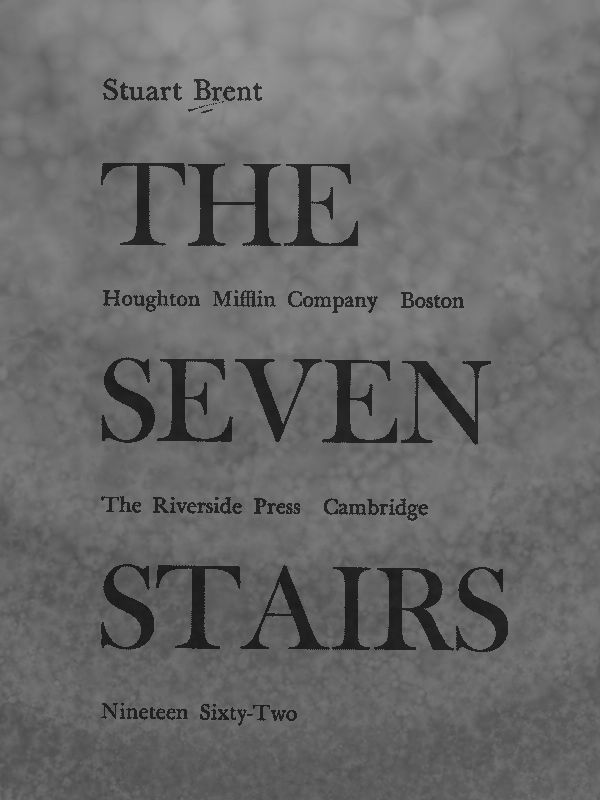 In particular, however, I wish to mention Hardwick Moseley for his encouragement when the going was rough; Milton Gilbert who made the Seven Stairs possible in the first place; Henry Dry, one of the few men I know who understand the meaning of forbearance; Goldie and Kalmin Levin (Jennie’s mother and father) for their devotion and unfailing help; Robert Parrish for his blue penciling; and Hope, who after giving birth to our son, Joseph, tenderly cared for the unstrung father through the pangs of giving birth to The Seven Stairs.