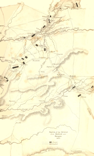 | The king and Soult advance from Valencia to the Tagus—General Hill takes a position of battle—The French pass the Tagus—Skirmish at the Puente Largo—Hill blows up the Retiro and abandons Madrid—Riot in that city—Attachment of the Madrilenos towards the British troops—The hostile armies pass the Guadarama—Souham restores the bridge of Toro—Wellington retreats towards Salamanca and orders Hill to retreat upon Alba de Tormes—The allies take a position of battle behind the Tormes—The Spaniards at Salamanca display a hatred of the British—Instances of their ferocity—Soult cannonades the castle of Alba—The king reorganizes the French armies—Soult and Jourdan propose different plans—Soult’s plan adopted—French pass the Tormes—Wellington by a remarkable movement gains the Valmusa river and retreats—Misconduct of the troops—Sir Edward Paget taken prisoner—Combat on the Huebra—Anecdote—Retreat from thence to Ciudad Rodrigo—The armies on both sides take winter cantonments | 308 |