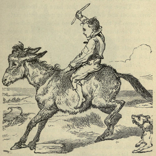 3. A man who bought a donkey for his children, tells this story of him: “I did not allow him to be pounded, and he got something better to eat[78] than thistles. My donkey proved to be no fool; but, like others, who have more wit than good manners, he was forever getting into mischief, and leading others into it.