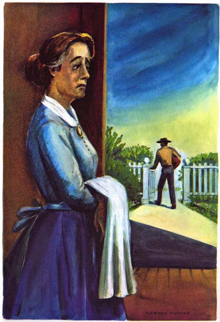 The plans cheered them. They would have plenty of real coffee now, instead of tea from parched acorns and corn, and a new coffee grinder that would do away with the labor of pounding the grains in a sack with a hammer. Their old coffee mill was absolutely worn out. They would get sacks of flour and have real flour bread. “You remember how Tim always likes flour gravy,” Mrs. Cude said. She would have enough calico for three new dresses and a sunbonnet, besides a tablecloth; he would have new boots, new hat and breeches, and percale for sewing into shirts. “I’ll get some blue for Tim,” Mrs. Cude said. There would be a new plow for the cornpatch and lumber for a gallery to the frame house, so hot in the summer.