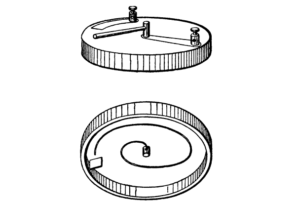 Fig. 67 shows emitter and receiver drawn to scale; the magnetic cores are introduced into the spiral A, and their effect on the length of the resonator spark is observed. With this arrangement of exciter the electric effect of the spiral is negligible, since it is well removed from electrostatic disturbance, and subject only to magnetic. [Pg 131] The spiral is of 12 well-insulated turns, the spark gap is a micrometer with point and knob, and a pair of adjustable plates to vary the capacity for purposes of tuning.