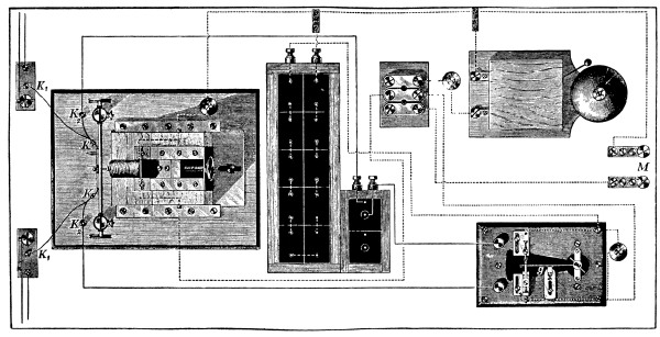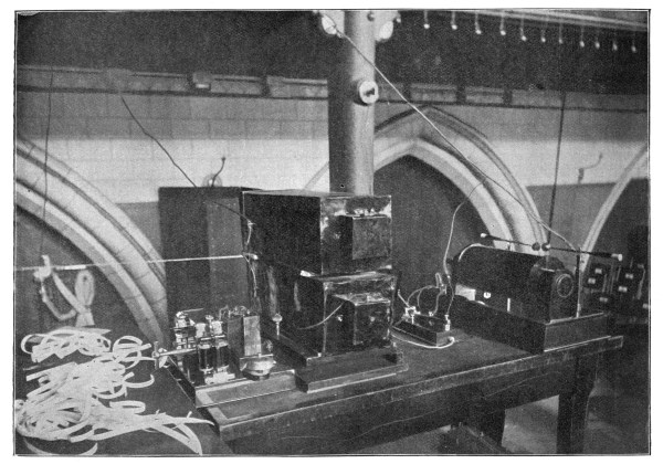 When I consented to discourse on the work of Hertz, my intention was to repeat some of his actual experiments, and especially to demonstrate his less-known discoveries and observations. But the fascination exerted upon me by electric oscillation experiments, when I, too, was independently working at them in the spring of 1888,[1] resumed its hold, and my lecture will accordingly consist of experimental demonstrations of the outcome of Hertz’s work rather than any precise repetition of portions of that work itself.