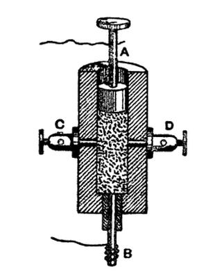 10. A cylinder of agglomerate of zinc powder in paraffin, with 40 per cent. of zinc.
