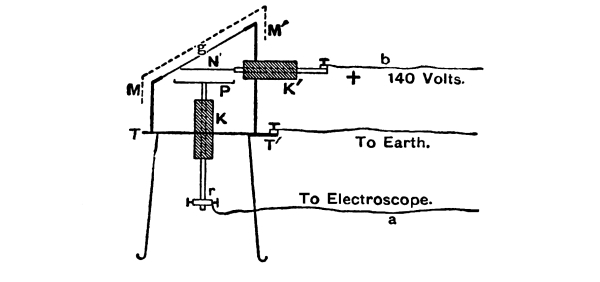 (e) If the experiment is made with a copper gauze and a zinc plate, the phenomenon nearly disappears on varnishing the gauze. His hypothesis is that radiation produces convection of negative electricity, the carriers being molecules of air.