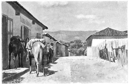 [248]Even without acquaintances among the people of the capital there are enough public show-places in Caracas to entertain a stranger for a fortnight. It is pleasure enough to walk the long, narrow streets under brilliantly colored awnings, between high one- and two-story houses, painted in blues and pinks and greens, and with overhanging red-tiled roofs and projecting iron balconies and open iron-barred windows, through which you gain glimpses beyond of cool interiors and beautiful courts and gardens filled with odd-looking plants around a splashing fountain.