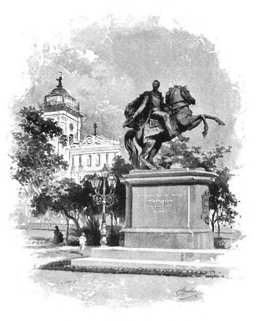 [257]He was a peculiar man, apparently, and possessed of much force and of a progressive spirit, combined with an overmastering vanity. The city was at its gayest under his régime, and he encouraged the arts and sciences by creating various bodies of learned men, by furnishing the nucleus for a national museum, by subsidizing the Opera-house, and by granting concessions to foreign companies which were of quite too generous a nature to hold good, and which now greatly encumber and embarrass his successors. But while he was president, and before he went to live in luxurious exile on the Avenue Kléber, which seems to be the resting-place of all South-American presidents, he did much to make the country prosperous and its capital attractive, and he was determined that the people should know that he was the individual who accomplished these things. With this object he had fifteen statues erected to himself in different parts of the city, and more tablets than one can[258] count. Each statue bore an inscription telling that it was erected to that “Illustrious American, Guzman Blanco,” and every new bridge and road and public building bore a label to say that it was Guzman Blanco who was responsible for its existence. The idea of a man erecting statues to himself struck the South-American mind as extremely humorous, and one night all the statues were sawed off at the ankles, and to-day there is not one to be seen, and only raw places in the walls to show where the memorial tablets hung. But you cannot wipe out history by pulling down columns or effacing inscriptions, and Guzman Blanco undoubtedly did do much for his country, even though at the same time he was doing a great deal for Guzman Blanco.