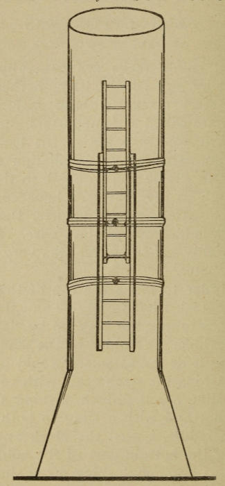 Self-supporters taper at the base and have an extra heavy foundation and a ladder to enable you to climb to the top, although in my travels I have come in contact with one self-supporter that had neither ladder nor gimblet wire. Fortunately this self-supporter was very small in diameter.