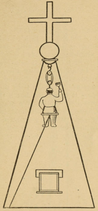 A tapering construction and not a hard job to rig after once tried. If you are capable of rigging a church spire, then it is an easy matter for you to rig a church dome or any other structure of that nature.