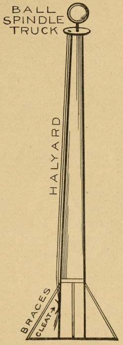 The halyard is the rope with which the flag is drawn up to the top, and it is never used for climbing purposes. The art of climbing a flagpole with ease and performing that which is to be done upon the pole will be explained in detail later on.