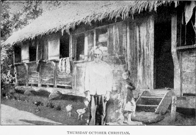 Yes, marriage is—shall I say it?—committed among our people, the different family names numbering seven. Young, McCoy, and Christian are of the original families, and those who have come in later on are Buffett, Warren, Butler, and Coffin, the last three being Americans, and only the very last, Coffin, still lives. I think away back in the long past there were some curious “love stories” which would prove quite interesting reading, and within my own knowledge there are several that would make a good foundation for very entertaining stories should someone be found to weave them.