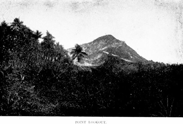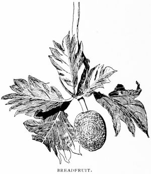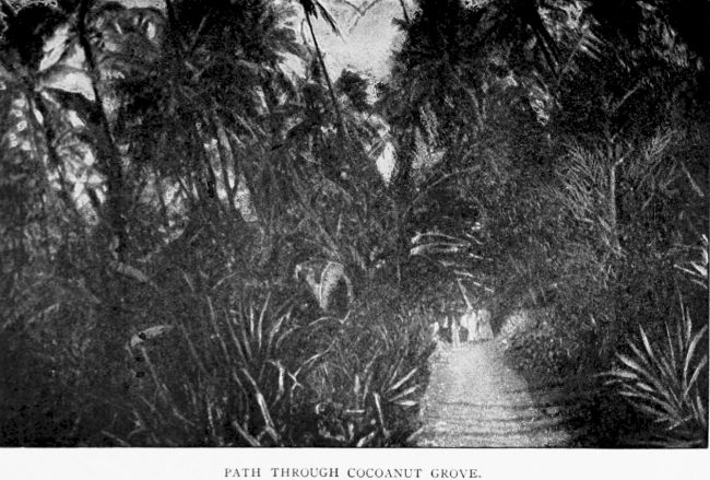 The landing place shown in one of the pictures [see page 27][266] on another page is at Bounty Bay, where the original settlers of the island destroyed their vessel more than a hundred years ago, and where, as the illustration shows, many of the inhabitants gathered to bid Captain Davis good-by. Up from this spot runs a path to the settlement itself, which is three or four hundred feet above the level of the sea. The main street is bordered with palm trees, and the thatched cottages on either side give evidence of thrift and prosperity. There are no cows or oxen on the island, but goats are plentiful, and as the land is steep and rocky in places, these sure-footed animals are doubtless better adapted to the needs of the people. Oranges grow in abundance, and so do sweet potatoes, yams, bananas, and pineapples. Captain Davis says that the dinner provided in his honor at the house of the Advent missionary was bountiful and excellent.
