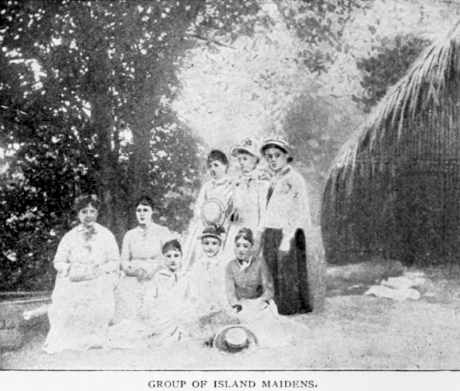 You ask if a photographer has ever come to our shores. Yes, many of them, and many views have been taken, not only of the varied scenery, but of the people, mostly in groups. Last[262] March an American shipmaster, Captain Davis, was here and spent most of his time taking pictures. Among others, he took that of Miss Andre and her school, and of me and my bare-footed little boys and girls.