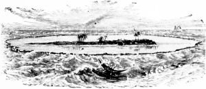 The island, though but a dot on the broad Pacific, being but two and one-quarter miles long by one and a half miles wide, is an interesting spot, and its history reads like a romance. Its location is a favorable one, being about two degrees south of the tropic of Capricorn, for which reason the weather is never so intensely hot as in some of the islands of the south seas, and is never cold. Beautiful tropical trees,—the tall, graceful cocoanut palm, the wide-spreading banyan, the pandanus palm, and others,—cover its surface from end to end. Refreshing breezes, cooled and moistened by passing over thousands of miles of ocean, constantly fan the surface of this lovely isle. It can be truthfully said of this island that
