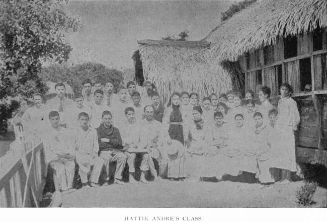 In February, 1893, Miss Hattie Andre, a young lady just graduated from a college in Michigan, arrived here to take charge of the school. My loved and honored father, sixty-nine years of age, then retired from the work, leaving it in the hands of Miss Andre and myself. She has a membership of about thirty-four of the young people, and I teach twenty-one of the youngest children, from the age of seven to fourteen, two of mine being Dano-Spanish boys from Mangareva, one of the Gambier Islands. Their sister attends Miss Andre’s school.