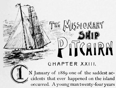 And now is drawing near a time unparalleled in the history of Pitcairn Island—a time when she passed under a visitation so terrible while it lasted, and so awful in its effects, that it was remarked that those who survived it were not the same persons they were before it came. But this is anticipating. On the 27th of April, 1893, the shipwrecked crew of the Bowdon, lost on Oeno reef, came to Pitcairn Island. The captain and a few others soon went away on an American ship for England, while the rest waited for an opportunity to go back to San Francisco. It is not necessary to give a detailed account of their stay, but it brought no blessing to the island.