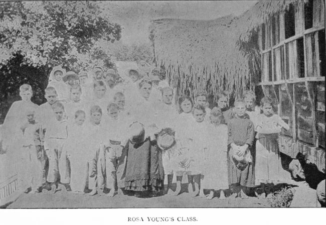 Mrs. Gates at the same time opened a kindergarten school for the youngest children, and had a class of fourteen to begin with. In addition to this she organized a mothers’ meeting, and had a class twice a month, to instruct in the methods of giving treatment to the sick, and also in cooking. Besides this she taught, or rather attempted to teach, stenography to a few of the[243] young people, some of whom soon gave up the attempt to learn. Four diligently practiced, and were meeting with a fair measure of success when the class was unavoidably broken up.