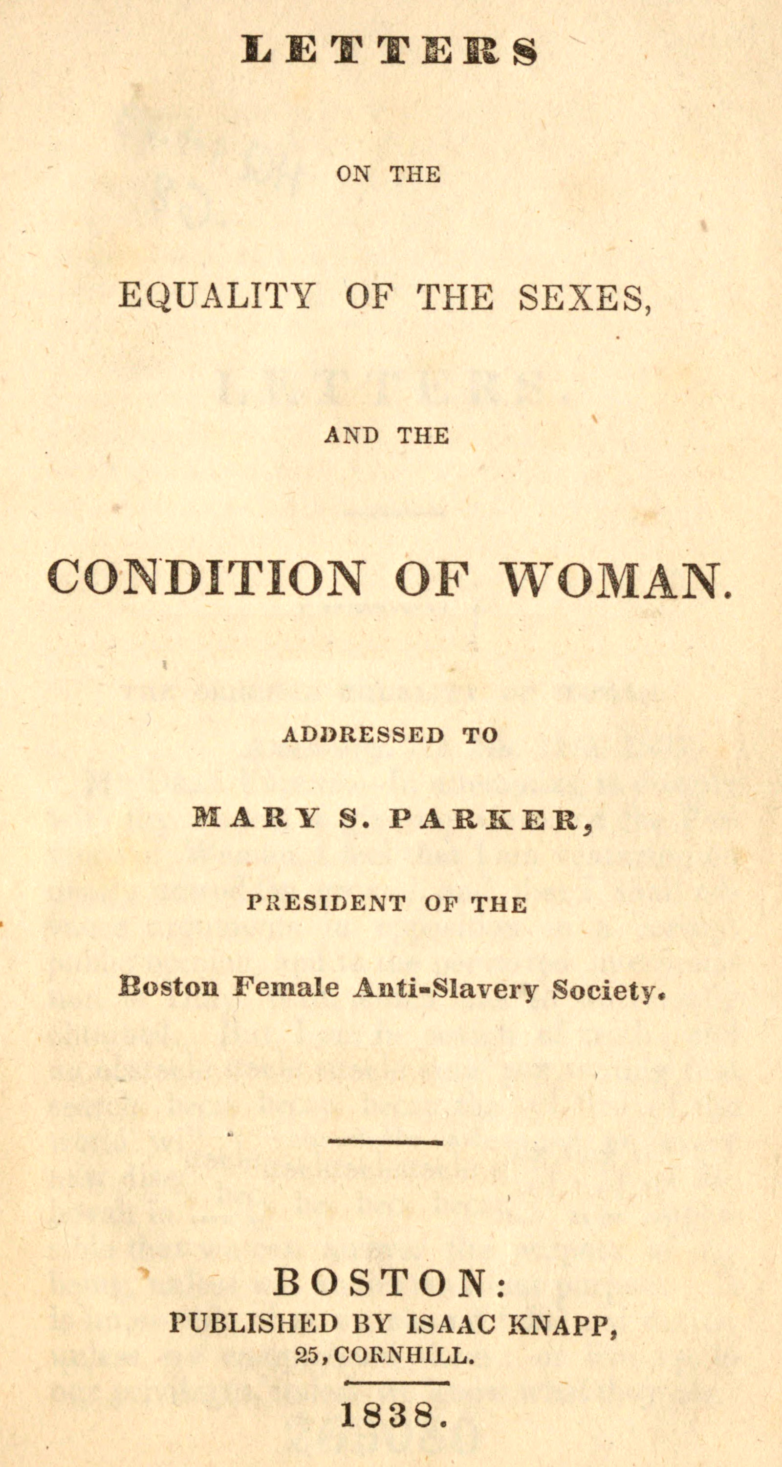 Dear Friend,—When I last addressed thee, I had not seen the Pastoral Letter of the General Association. It has since fallen into my hands, and I must digress from my intention of exhibiting the condition of women in different parts of the world, in order to make some remarks on this extraordinary document. I am persuaded that when the minds of men and women become emancipated from the thraldom of superstition and ‘traditions of men,’ the sentiments contained in the Pastoral Letter will be recurred to with as much astonishment as the opinions of Cotton Mather and other distinguished men of his day, on the subject of witchcraft; nor will it be deemed less wonderful, that a body of divines should gravely assemble and endeavor to prove that woman has no right to ‘open her mouth for the dumb,’ than it now is that judges should have sat on the trials of witches, and solemnly condemned nineteen persons and one dog to death for witchcraft.