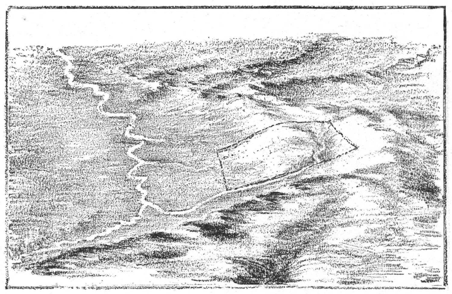 As has been said, the pupil should model and draw continually, in connection with or after every lesson in the field. It is the very best method by which to attain mental[22] growth, and should of course, be the genuine expression of his own mental images gained through observation. He should model and draw all surface features or areas seen in his excursions. He may model, in sand, putty or clay, maps of the areas of the school-yard, farms or parks in the vicinity; or chalk model them, then indicate upon them the boundaries of any sub-divisions they may have, such as fields, clumps of trees, houses or other buildings.